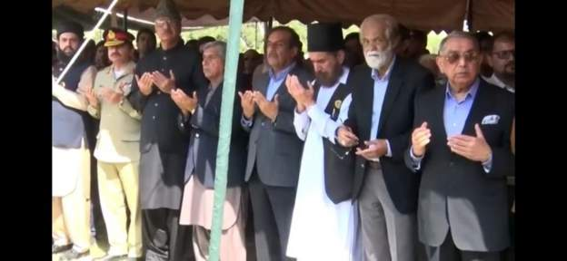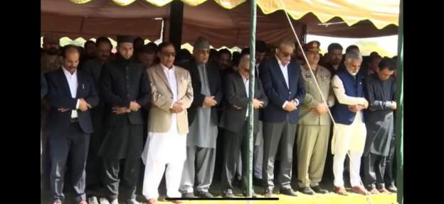 سابق صدر پرویز مشرف کی نماز جنازہ پولو گراؤنڈ ملیر کینٹ کراچی میں ادا کی گئی، نماز جنازہ میں جوائنٹ چیفس آف اسٹاف کمیٹی جنرل ساحر شمشاد ، سابق آرمی چیف جنرل ریٹائر قمر جاوید باجوہ ، جنرل ریٹائر اشفاق پرویز کیانی و دیگرفوجی افسران ،خالد مقبول، مصطفیٰ کمال، فاروق ستار، فروغ نسیم اور سول سوسائٹی کے افراد نے بڑی تعداد میں شرکت کی۔