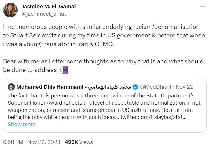 سوشل میڈیا پر کئی صارفین نے اس واقعے پر ردعمل دیا ہے، جیسے جیسمین کہتی ہیں کہ وہ امریکی حکومت کے ساتھ کام کرتے ہوئے ایسے کئی لوگوں سے ملی ہیں جو نسل پرستی اور غیر انسانی سلوک کے عادی ہیں۔