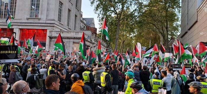 برطانوی شہر گلاسگو میں بھی فلسطینیوں کے حق میں ریلی نکالی گئی اور مستقل جنگ بندی کی حمایت میں نعرے لگائے گئے۔