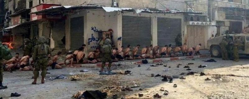 بی بی بی نے اس ویڈیو کی تصدیق کی ہے جس میں فلسطینی افراد کو برہنہ حالت میں صرف زیر جامہ (انڈر ویئر) پہنے دیکھا جاسکتا ہے۔ وہ اپنے گھٹنوں پر ہیں اور ان کے گرد اسرائیلی فوجی ہیں۔